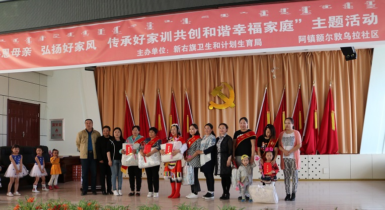 活動中,新巴爾虎右旗計生協會舉辦了家風家訓講座,表彰獎勵了6戶“北疆幸福家庭”標兵示范戶,救助了5名貧困母親和5名貧困女孩,并為他們敬獻了鮮花。隨后,社區文化站的志愿者及新巴爾虎右旗第二幼兒園的小朋友們帶來了精彩的文藝演出。