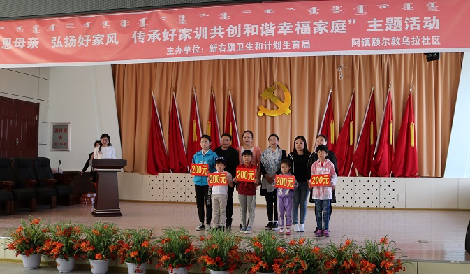 為弘揚“母愛、愛母”的優良傳統美德,培養正確的家庭觀和幸福觀,傳承良好家風和培育良好家教,以良好的家風推動幸福家庭建設,以幸福家庭建設推動社會文明和健康發展。在“5.15”國際家庭節及母親節來臨之際,5月10日,呼倫貝爾市新巴爾虎右旗計生協會組織旗阿拉坦額莫勒鎮額爾頓烏拉社區共同開展“感恩母親 弘揚好家庭 傳承好家訓共創和諧幸福家庭”主題活動。
