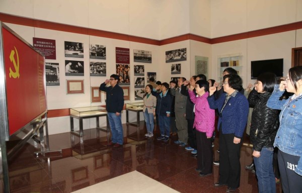 之后,大家來到毛澤東紀念室參觀,通過大量詳實的照片、文獻、實物,大家仿佛翻閱了中國共產黨領導各族人民進行革命和建設的歷史畫卷,重溫了領袖們在各個時期的光輝業績。最后,趙本志副秘書長帶領全體黨員同志們在莊嚴的黨旗下重溫了入黨誓詞。
