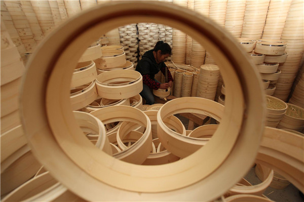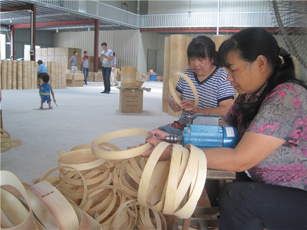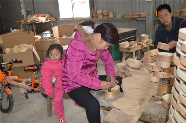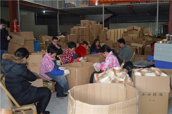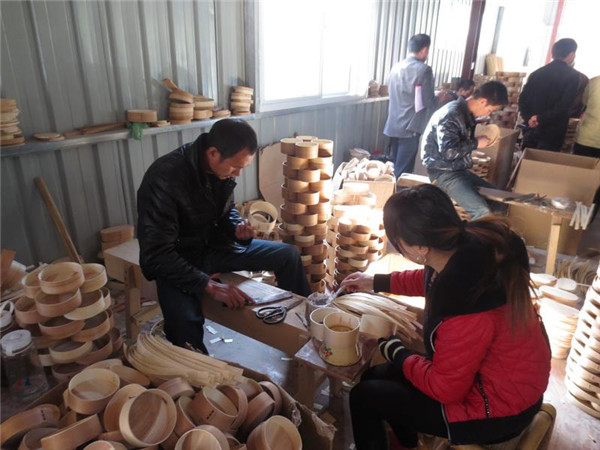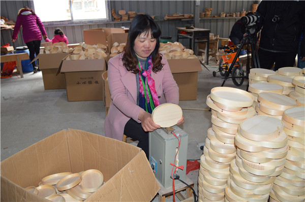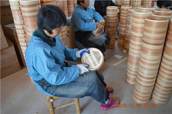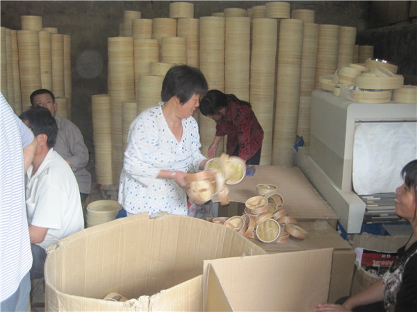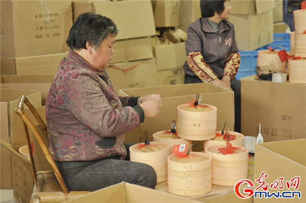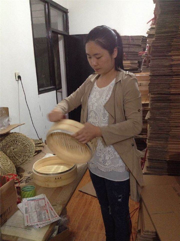 致富帶頭人黃玉娟在小作坊里制作蒸籠