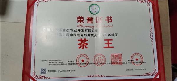 創業小成后,陳花總是飽含一顆感恩的心,把金觀音種植管理技術無償傳授給村民,為鄉親們提供技術指導和服務,提高周邊農民種茶積極性。2014年7月,陳花準備擴大種植面積再開墾幾畝茶園,爭當茶葉種植專業戶,吸納帶動更多的計生戶脫貧致富!但是大女兒剛考入福建師范大學,二女兒也進入蕉城中學二女春蕾班讀書,茶園施肥、雇工、噴藥等生產出現流動資金缺口。為了幫一戶成一戶,鎮計生協會再次為她提供了3萬元幸福工程續助款,還幫她申請到3萬元計生小額貼息貸款。計生協會的支持和鼓勵讓陳花無比感動,不僅增強了她脫貧致富的信心和決心,也激發了她創業的熱情!夫婦倆在幫扶干部的幫助和指導下,選擇在海拔740米的上洋村發展金觀音茶葉種植。該地區山泉清冽無污染,草木豐茂,海拔的優勢讓茶園一年中有180天處在云霧繚繞中,而清冽無污染的山泉水滋養而成的金觀音茶葉帶上了特有的茶香。一年過去了,辛勤耕作和科學管理使陳花夫婦的茶園,由10畝小規模種植逐步擴大為100畝大規模、高效益的金觀音茶園生產基地,年產值100多萬元。陳花公司精心制作的“天山紅”烏龍茶兼具鐵觀音之形又有高山茶之香,工藝成熟,茶香持久、茶味悠長;品茗后,滿口生香,潤喉生津;2017年5月榮獲第五屆中國世界功夫茶大賽茶王賽紅茶“茶王”;2017年12月榮獲第十四屆“閩茶杯”(秋季)烏龍茶評審“一等獎”;被評為農業產業化“市級龍頭企業”并獲得SC認證;2018年獲得省農業廳頒發的《無公害農產品證書》,并擁有自己的“一品一碼”和國家認定的條形碼,被授予“福建省農業技術推廣服務行業協會會員單位”。