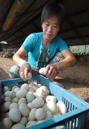 圖二、安徽省來安縣半塔鎮(zhèn)貧困母親卞傳芳在養(yǎng)鴨場里工作