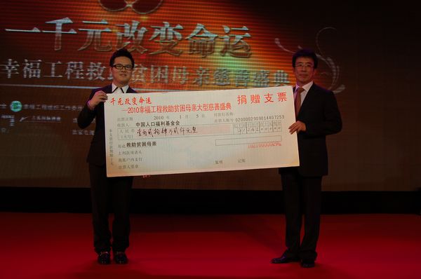 幫助困境母親,建設(shè)幸福家庭2010 年 1 月 5 日 ,“一千元改變命運(yùn)—— 2010 幸福工程救助貧困母親”大型慈善盛典圓滿落幕。此次盛典通過(guò)拍賣共籌得善款 124.2 萬(wàn)元,將全部用來(lái)救助貧困母親。