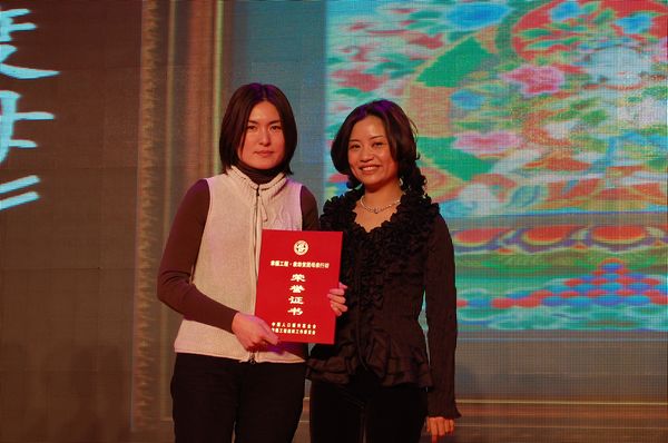 郭培女士為拍得《白度母》的秦建平女士頒獎(jiǎng)
