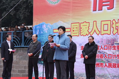 國家人口計生委副主任崔麗親自為女孩代表佩戴幸福圍巾