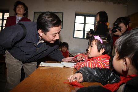 基金會(huì)藍(lán)野副秘書長親切的在和小朋友交流