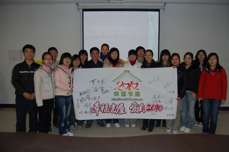 “幸福書屋 愛自2010”項目自啟動以來,得到了社會各屆愛心人士尤其是廣大網民朋友的大力支持,目前已募集善款50余萬元。4月13日至15日華北電力大學外國語學院班長陳丹霓組織全班共17名學生在校園開展了募捐活動,來自學校外國語學院、電氣與電子工程學院、經濟與管理學院、國際教育學院等10個班級的學生奉獻了愛心,共籌集善款901.60元。