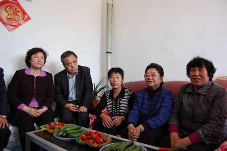 和受助母親親切交談(右二幸福工程主任顧秀蓮、右四中國人口福利基金會理事長趙炳禮)