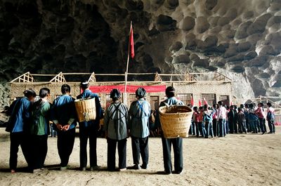 洞內(nèi)陰濕,有足球場(chǎng)大小,住著 16 戶(hù)人家 。耕地在洞外,人均 0.53 畝。 他們是在 100 多年間陸續(xù)遷徙來(lái)的,居留最久的家庭,已延續(xù) 4 代香火。