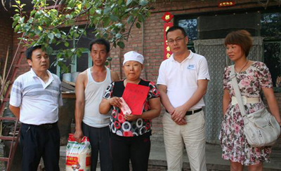 7月20日,中國人口福利基金會乳腺健康宣教診治中心項目辦執(zhí)行主任王剛,在河北省唐縣人口計生委領導的陪同下,來到北店頭鄉(xiāng)西顯口村,將5000元救助金和生活用品送到乳腺癌患者門紅憲家中,為這一貧困家庭解了燃眉之急,不善言辭的門紅憲一家激動得不知如何表達。