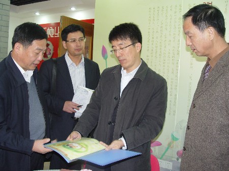 楊秘書長與江蘇省計劃生育協會、南京市人口計生委領導饒有興致地翻看,多年前由我會與南京人口與生殖健康信息交流中心聯合印制的宣傳品