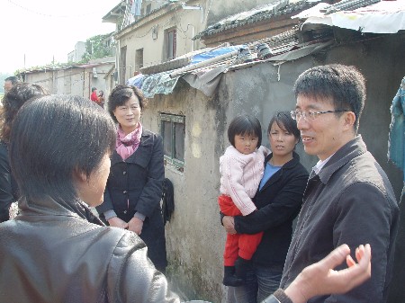 在相關省、市、區(市)人口計生委(局)和計生協領導陪同下,調研組現場考察了寧波市北侖區、鄞州區、余姚市,杭州市上城區、蘇州市高新區和南京市秦淮區所屬的 6 個街道辦事處 6 個社區(村)公共服務中心 2 個婚育綜合(家庭保健)服務中心,聽取了“關注民生、服務家庭”的情況介紹。在當地組織的配合下,調研組召開 6 次座談會,圍繞當前城鄉家庭特別是計生家庭在發展中存在的主要矛盾和問題、人口計生系統在“提高 家庭發展能力”上開展了哪些卓有成效的工作、人口福利基金會等社會組織如何與政府部門合作,在促進家庭發展、建設幸福家庭中發揮積極作用等內容,與相關政府領導、人口計生工作人員及城鄉家庭代表展開討論。在南京市秦淮區紅花街道辦事處龍苑新寓社區,楊秘書長代表基金會現場向葛晴、王玉霞二個特困家庭各捐助 1000 元,并到葛晴家走訪慰問。