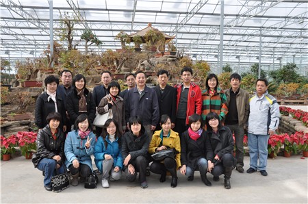 國內(nèi)發(fā)展部劉麗榮副部長與寶坻區(qū)計生干部在“幸福工程”項目資助的蔬菜大棚外合影