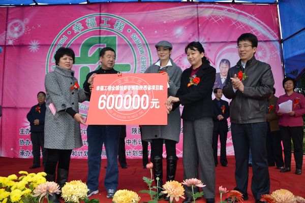 楊文莊、馬艷麗代表幸福工程組委會向陜西省捐贈了 60 萬元善款