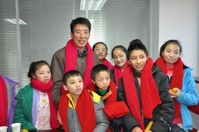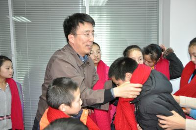孩子們個個開心興奮,就像回到了家里,還給員工們帶來他們的新年禮物。他們用原生態(tài)的藏族歌曲為大家送上新年祈福?;饡T工為孩子們圍上社區(qū)阿姨為“陽光女孩”編織的紅圍巾。楊文莊秘書長高歌一首《天路》,贏來陣陣掌聲。國際合作部李曉琳部長演唱了幸福書屋公益活動主題曲《陽光下的花兒》。國內(nèi)發(fā)展部葛振江部長、項目部牛艷平部長等一起合唱了“幸福工程”主題歌《牽著你的手》。