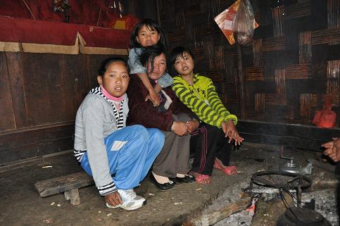 她叫余福艷,今年 36 歲,有三個女兒(栗粟族一家可生三個孩子)。大女兒叫余艷聰,今年 15 歲,讀初三。由于學校離家較遠所以平時寄宿,每周末回家。二女兒余艷仙, 13 歲,上初二,和姐姐在一所學校讀書。小女兒余艷嬌,今年九歲,在寨子里讀小學三年級?,F在國家實行九年義務教育,孩子們的學費都免了,但生活費還要自己承擔,小女兒在家吃飯每月的生活費會少一些,兩個讀初中的女兒每周回來每人都向母親要 30-40 元錢的食宿費,一個學期每人約 680 元錢,兩人需要 1360 元,一個學年就是 2720 元。這對生活在城市的人來講也許算不上什么,但對這個只種了 4 畝山地,靠吃政府救濟的家庭來說卻是一筆不小的開支。用這僅有的 4 畝山地,她們種了包谷、土豆和草果(一種調味品),由于土地貧脊,每年打的糧食也就有 500 多斤,只夠全家人吃 4 個多月,政府每年給 150 斤的救濟糧,剩下的都要花錢去買。種的草果也只能賣上 1000 多元錢。農閑時,大人們便會去打零工,每天能有 20 多元錢的收入,但這樣的日子每年也就只有一個月的時間。加上政府給的 1000 元低保費,全家每年的收入只有三、四千元,這已經是最好的年份了。聊天的時候得知她家還有幾十畝荒山,可以用來種核桃樹、紅油茶樹等經濟型作物,每畝只要投入 7000 多元錢, 4 年后每年就可收入 3-4 萬元,但是因為沒有錢,也只能是一種夢想。