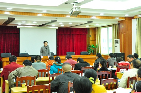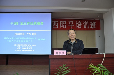 中國人口學會秘書長、中國人口與發展研究中心研究員解振明為學員講授計劃生育優質服務