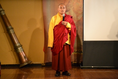 首先由來自拉薩的尼瑪尼扎法王開示,向大家介紹藏傳佛教、藏歷新年的歷史、傳統、習俗。法王表示:“則熱活佛是我多年親密的佛友,藏傳佛教由佛祖釋迦牟尼所創,宗旨就是愛人如己,知道則熱活佛創立了這樣一個福利院,幫助玉樹地區的孤困兒童,我十分高興,能幫助困境中的人做點事,是非常快樂、有意義的?!蹦岈斈嵩ㄍ踹€為大家帶來一段禱詞,在佛法的沐浴下,大家都感受到慈悲與大愛的力量。