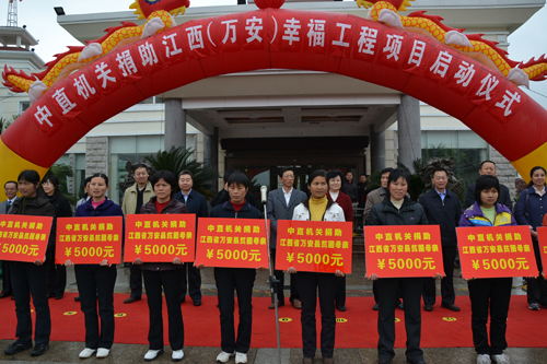 幫助困境母親,建設(shè)幸福家庭4 月 8 日上午 , 中央直屬機關(guān)捐贈江西省幸福工程項目啟動儀式在江西省吉安市萬安縣舉行。中央直屬機關(guān)人口計生委副主任、我會監(jiān)事石穎波以及中央直屬機關(guān) 7 個部委代表,我會副秘書長兼國內(nèi)發(fā)展部部長、幸福工程辦公室副主任葛振江,江西省計生協(xié)秘書長、幸福工程江西省組委會辦公室主任孫何更,吉安市人民政府副市長郭慶亮,吉安市人口計生委主任李玉蘭,萬安縣縣委副書記、縣長王四華等領(lǐng)導(dǎo)以及受助母親代表出席啟動儀式。
