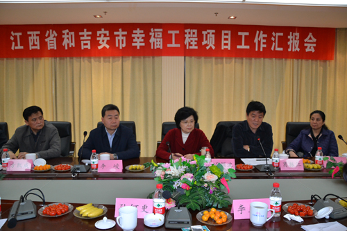 幫助困境母親,建設幸福家庭4 月 7 日 , 由中央直屬機關 7 個部委組成的考察團以及我會副秘書長兼國內發展部部長、幸福工程辦公室副主任葛振江一行 11 人 , 來到江西省吉安市萬安縣 , 聽取了江西省、吉安市“幸福工程”項目工作匯報。