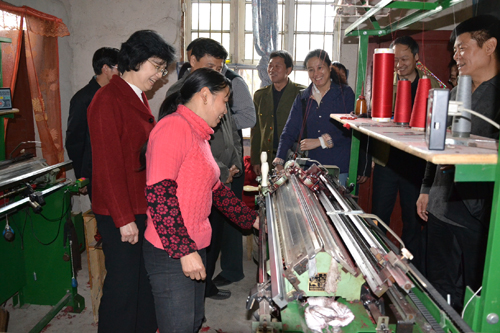接下來(lái),考察團(tuán)前往咗龍鄉(xiāng)富裕村入戶探望“幸福工程”受助母親。富裕村 2009 年為 17 位貧困母親提供每人 6000 元的“幸福工程”救助款,幫助她們發(fā)展無(wú)公害蔬菜大棚種植。中直機(jī)關(guān)的領(lǐng)導(dǎo)們來(lái)到受助母親鐘健英的家里,關(guān)切地詢問(wèn)她的生產(chǎn)、生活狀況。鐘健英十分激動(dòng),非常感謝中央的領(lǐng)導(dǎo)能來(lái)看望自己。她說(shuō)自己有兩個(gè)女兒,以前家里沒(méi)有什么錢,種植水稻一畝地一年到頭就賺個(gè)七、八百元錢,得到“幸福工程”救助后她建立了 3 個(gè)蔬菜大棚,種植辣椒以及時(shí)鮮蔬菜,當(dāng)年收入近一萬(wàn)元,她今年又新建了 2 個(gè)大棚。當(dāng)問(wèn)及還款的問(wèn)題時(shí),她說(shuō),貼息貸款當(dāng)然要還,當(dāng)初給我錢就是因?yàn)槲抑v信譽(yù)嘛,我現(xiàn)在有能力還錢,再去救助別的貧困母親。