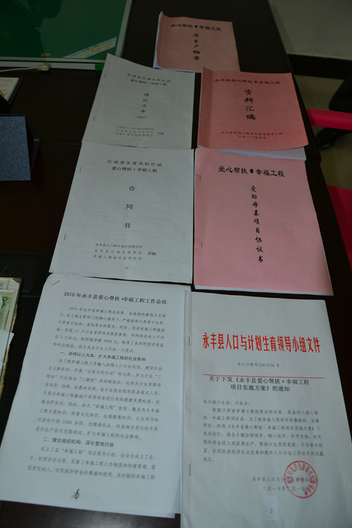 在項(xiàng)目點(diǎn)調(diào)研后,考察組一行還來(lái)到永豐縣幸福工程項(xiàng)目辦公室,詳細(xì)查閱了“幸福工程”項(xiàng)目文本、救助名單、項(xiàng)目協(xié)議書等檔案資料,與基層工作人員進(jìn)行了交流。