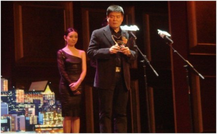 影視明星董潔、潘粵明夫婦為我會頒獎,葛振江副秘書長上臺領獎