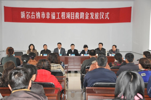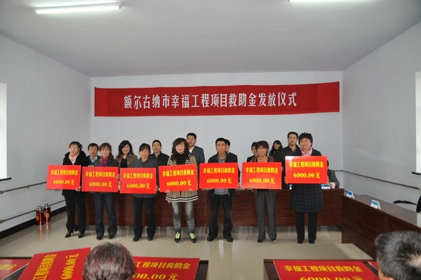 幫助困境母親,建設(shè)幸福家庭幸福工程額爾古納市項(xiàng)目救助金發(fā)放儀式于 4 月 14 日 在黑山頭鎮(zhèn)舉行, 14 戶受助家庭代表在現(xiàn)場領(lǐng)到了每戶 6000 元的救助金。呼倫貝爾市人口和計(jì)劃生育協(xié)會副會長金德、秘書長那林,額爾古納市人民政府副市長臧著強(qiáng)以及計(jì)生局、黑山頭鎮(zhèn)負(fù)責(zé)人參加了救助金發(fā)放儀式。