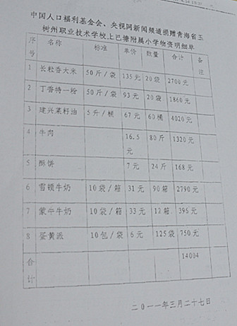2、“午餐計劃”的前611份善款共計6110元已經(jīng)用于“青海玉樹巴塘村小學(xué)愛心午餐計劃”。