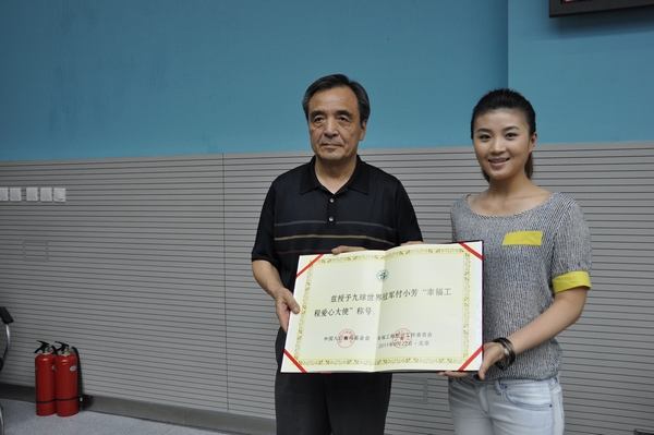 趙炳禮理事長向付小芳授予“幸福工程愛心大使”榮譽證書