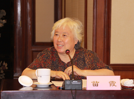 中國計劃生育協會副會長、中國人口福利基金會副理事長苗霞發言