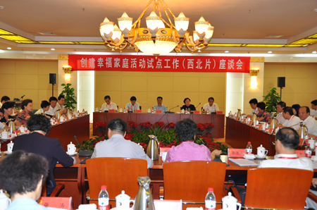 幫助困境母親,建設(shè)幸福家庭7月5日至6日,國家人口計生委、中國計劃生育協(xié)會、中國人口福利基金會在寧夏回族自治區(qū)銀川市召開創(chuàng)建幸福家庭活動試點工作(西北片)座談會,認真學(xué)習(xí)貫徹胡錦濤總書記在慶祝中國共產(chǎn)黨成立90周年大會上的重要講話精神,深入研究全面做好人口工作、促進家庭和諧幸福的思路和途徑,圍繞“文明、健康、優(yōu)生、致富、奉獻”五個方面,總結(jié)交流西北地區(qū)“創(chuàng)建幸福家庭活動”試點工作的進展情況和經(jīng)驗體會,安排部署啟動階段下一步工作。第十屆全國政協(xié)副主席、中國人口福利基金會會長王忠禹,國家人口計生委黨組副書記、副主任趙白鴿,中國計生協(xié)黨組書記、常務(wù)副會長楊玉學(xué)出席會議并講話,寧夏回族自治區(qū)副主席姚愛興出席開幕式并致辭。會議由中國人口福利基金會理事長趙炳禮主持。