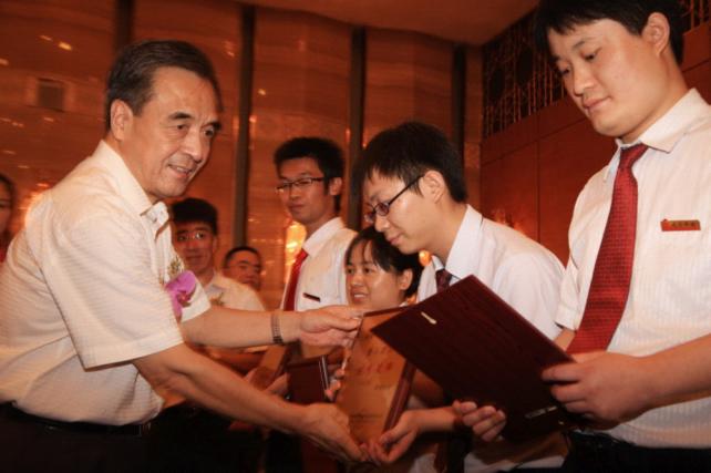中國人口福利基金會理事長趙炳禮為龍文教育優秀教師頒發榮譽證書