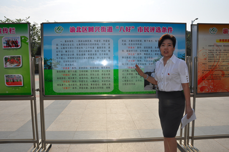 工作人員講解回興街道創建幸福家庭活動開展情況