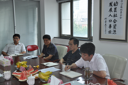 幫助困境母親,建設幸福家庭8月29日,寧夏人口計生委黨組書記、主任王儉一行蒞臨中國人口福利基金會。同行的領導同志還有寧夏人口計生委黨組副書記、副主任陳紅纓,黨組成員、副主任白秀榮,財務獎扶處處長趙國民,計劃生育協會專職副會長張磊。我會理事長趙炳禮、副理事長兼秘書長楊文莊、副秘書長葛振江及各部門負責同志出席接待會議。