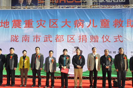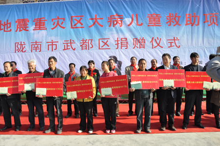 “汶川地震重災區大病兒童救助項目”在甘肅省隴南市武都區、康縣、文縣、甘南州舟曲縣4個重災區開展,其中,為武都區114名大病患兒援助救助金96萬余元。