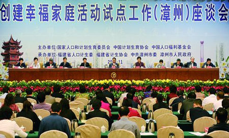 11月23日至24日,創建幸福家庭活動試點工作(漳州)座談會在福建省漳州市召開。十屆全國政協副主席、中國人口福利基金會會長王忠禹,國家人口計生委黨組書記、主任李斌,中國計劃生育協會黨組書記、常務副會長楊玉學講話,國家人口計生委副主任崔麗主持會議,福建省委常委、副省長陳樺出席會議。