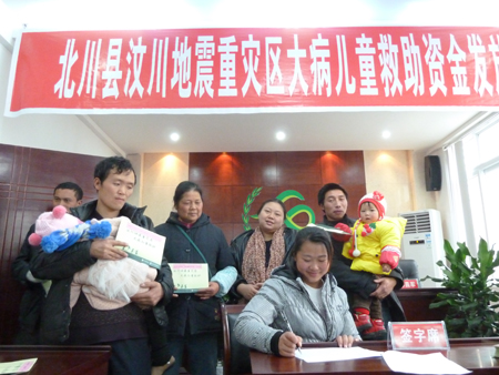 北川縣舉行大病兒童救助金發(fā)放儀式