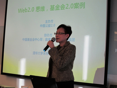 在第一天的會議中,中國公益2.0項目負責人、美國麻省理工學院王瑾教授說,2.0時代新公益事業的發展,需要各方跨界合作,組成一個互動的公益生態網絡。基金會中心網副總裁陶澤通過大量數據,展示了中國基金會行業的發展狀況,并介紹了基金會中心網提供的各項服務。公益2.0項目成員、鷹眼安全文化網產品工程師李建博老師在介紹“收聽2.0”時告訴大家,新媒體的發達讓每一個人都有了發言的渠道,但在這種眾聲喧嘩的環境中,準確的去收聽自己最需要的信息顯得尤為重要。中國公益2.0技術總監、中國科學技術大學謝棟老師通過大量詳實的案例介紹了基金會利用網絡開展營銷的概念、優勢和策略。