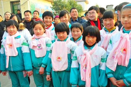 為了傳遞關懷與關愛,陽光女孩基金“幸福圍巾 溫暖接力”隨“三下鄉”活動走進山東臨沂,捐贈2000條圍巾,將溫暖送到革命老區兒童身邊。活動過程中,國家人口計生委副主任崔麗、宣教司司長張建、中國人口福利基金會副秘書長藍野等領導,親自為老區女孩戴上飽含社會關愛的圍巾,并鼓勵她們好好學習,健康成長,為建設老區做出應有的貢獻。