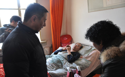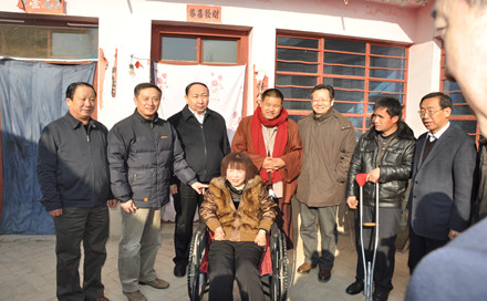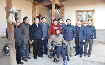酒泉市市委領(lǐng)導(dǎo)、中國(guó)人口福利基金會(huì)藍(lán)野副秘書(shū)長(zhǎng)及慈愛(ài)基金發(fā)起人等下到各戶(hù)為下肢殘疾人發(fā)放輪椅