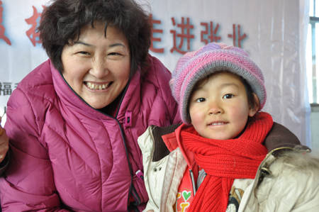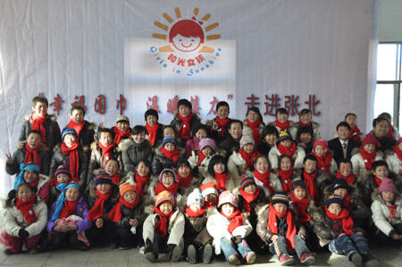幫助困境母親,建設(shè)幸福家庭2011年的最后一天,陽光女孩基金“幸福圍巾 溫暖接力”活動走進張家口市張北縣,為單晶河小學(xué)的孩子們送去溫暖和新年祝福。中國人口福利基金會項目管理部牛艷平部長、張家口市人口計生委郭偉副主任、張家口市計劃生育協(xié)會秘書長許磊、以及北京市海玲編織社楊海玲經(jīng)理等多位領(lǐng)導(dǎo)、嘉賓出席捐贈活動。