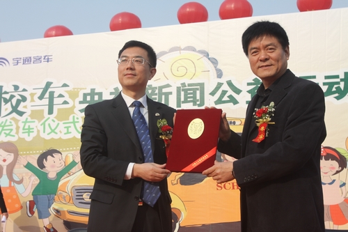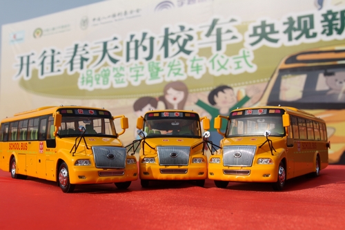 “開往春天的校車”央視公益行動首批校車捐贈儀式在鄭州宇通科技園舉行