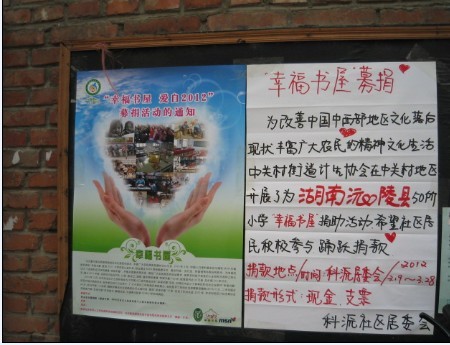 3月15日起,海淀區(qū)計生協(xié)聯(lián)合中關(guān)村計生辦號召中關(guān)村街道轄區(qū)各單位向幸福書屋捐款。3月29、30日,歷經(jīng)短短兩周的時間后,中關(guān)村地區(qū)單位計生負(fù)責(zé)人前往街道計生辦遞交各單位募集來的幸福書屋捐款。兩天時間內(nèi),中國人口福利基金會共接收到了中國工商銀行股份有限公司北京海淀支行、中科院各研究所、北京市中關(guān)村醫(yī)院,以及中關(guān)村地區(qū)各社區(qū)居委會等共41家單位總計81002元的捐款。全部捐款將會用于在湖南省沅陵地區(qū)建造幸福書屋。