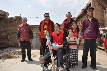 慈愛基金發起人加措、嘉樣到困難家庭發放輪椅剪影