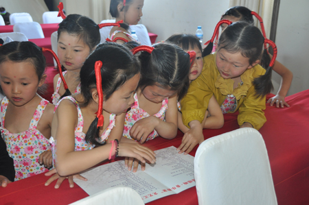 演出開始前,候場的小朋友們認真地研究著演出名單,絲毫沒有怯場