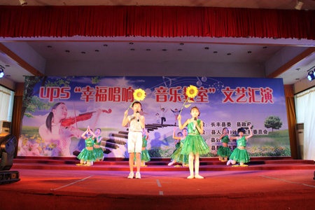 播撒一片愛心,就會收獲一片陽光。今天是收獲的日子,是對音樂教室項目的檢驗。自2011年9月6日起,我會為長豐縣捐建了20間UPS音樂教室,并陸續開展音樂老師培訓,大學生志愿者支教、互動等活動,給受助小學的學生們帶去了歌聲與歡笑。此次文藝匯演,以“用音樂感動世界、用歌聲凈化心靈”為主題,激發小學生對音樂的興趣和愛好,培養孩子們的音樂素質,體現朝氣蓬勃的精神風貌。同時,為學生們搭建一個展示自我的舞臺,通過他們自編自導的精彩演出,充分展現了音樂帶給學生的快樂,展示受助小學在管好、用好音樂教室方面的成效。