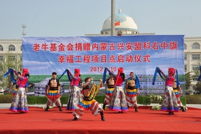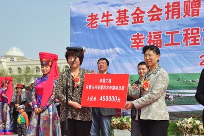 幫助困境母親,建設(shè)幸福家庭2012 年,老牛基金會(huì)捐贈(zèng)“幸福工程—救助貧困母親行動(dòng)” 100 萬(wàn)元,選定在新疆兵團(tuán)農(nóng) 4 師 64 團(tuán)和內(nèi)蒙古興安盟科右中旗設(shè)立項(xiàng)目點(diǎn)。 5 月 10 日,母親節(jié)前夕,內(nèi)蒙古興安盟科右中旗幸福工程項(xiàng)目點(diǎn)啟動(dòng)儀式在興安盟楓葉廣場(chǎng)舉行。幸福工程從老牛基金會(huì)捐贈(zèng)款中拿出 45 萬(wàn)元,科右中旗政府配套 45 萬(wàn)元,在科右中旗吳龍寶嘎查建立扶貧項(xiàng)目點(diǎn),資助 90 位貧困母親,每人 1 萬(wàn)元,開展有機(jī)小米、苞谷等農(nóng)作物種植。下午,老牛基金會(huì)與人基會(huì)一行到科右中旗吳龍寶柳條溝探訪了受助母親家庭。