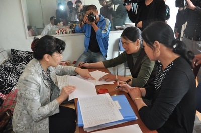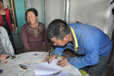 我們當場即與 8 戶受助母親簽訂了項目協議,現場發放款項。除了村長作為擔保人之外,每 3 位受助者還組成一個小組進行聯保。由于是新設立的項目點,我們要求科右中旗的項目辦的工作人員,將簽約和發款程序走一遍,果然發現了一些問題。比如,與母親簽訂的協議不是幸福工程提供的制式協議,條款不嚴謹,有幾處錯誤。我們決定日后與這幾位受助母親再補簽標準協議,并在舊協議上補充說明“新協議簽訂后,該協議即作廢”。剩下 80 戶受助母親的項目款將通過銀行直接匯到母親的賬號。回到北京后,我們將通過電話回訪的方式抽查協議簽署與資金落實情況。