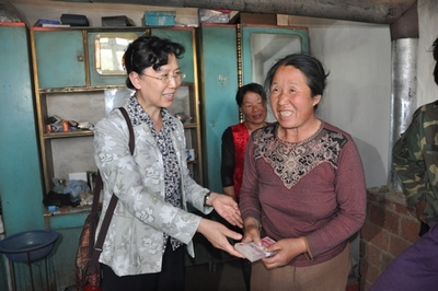 挨著白金鴿家的是王玉姐。她不會寫字,丈夫幫她在協議書上寫下名字,她再摁上一個手印。郭京茹部長代表人基會將項目款交到她手中。離開時,在她家嘮嗑的一位大姐也跟著出來送我們。她說這次幸福工程項目,自己沒有申請上,很遺憾。明年再有資金,一定第一個申請,第一個還款。